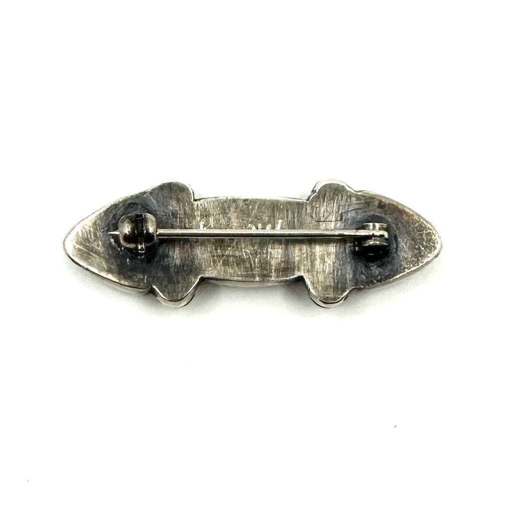 Jesse Robbins Coin Silver Ingot Pin with three Lone Mountain Turquoise Stones. 1-3/8" wide by 1/2" tall