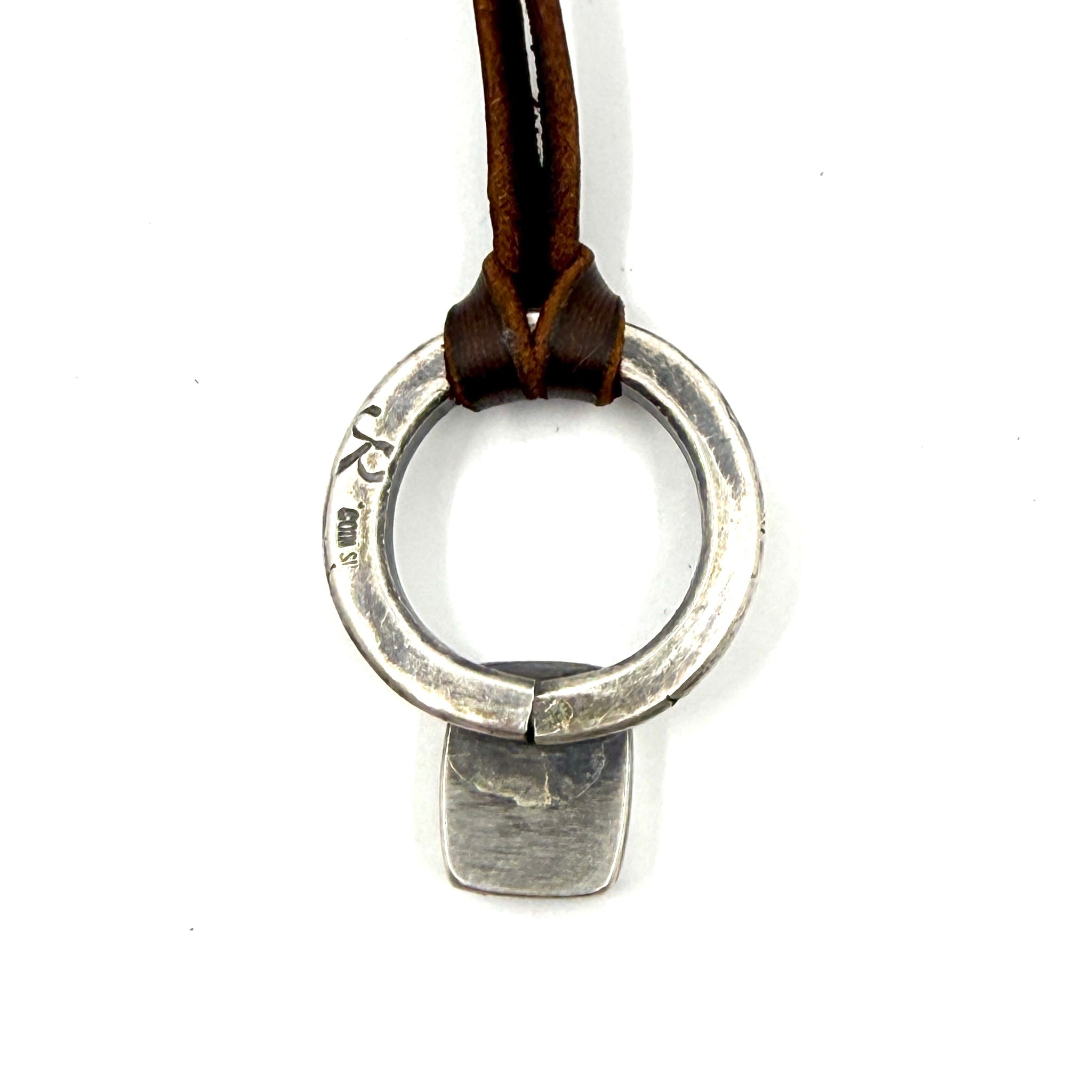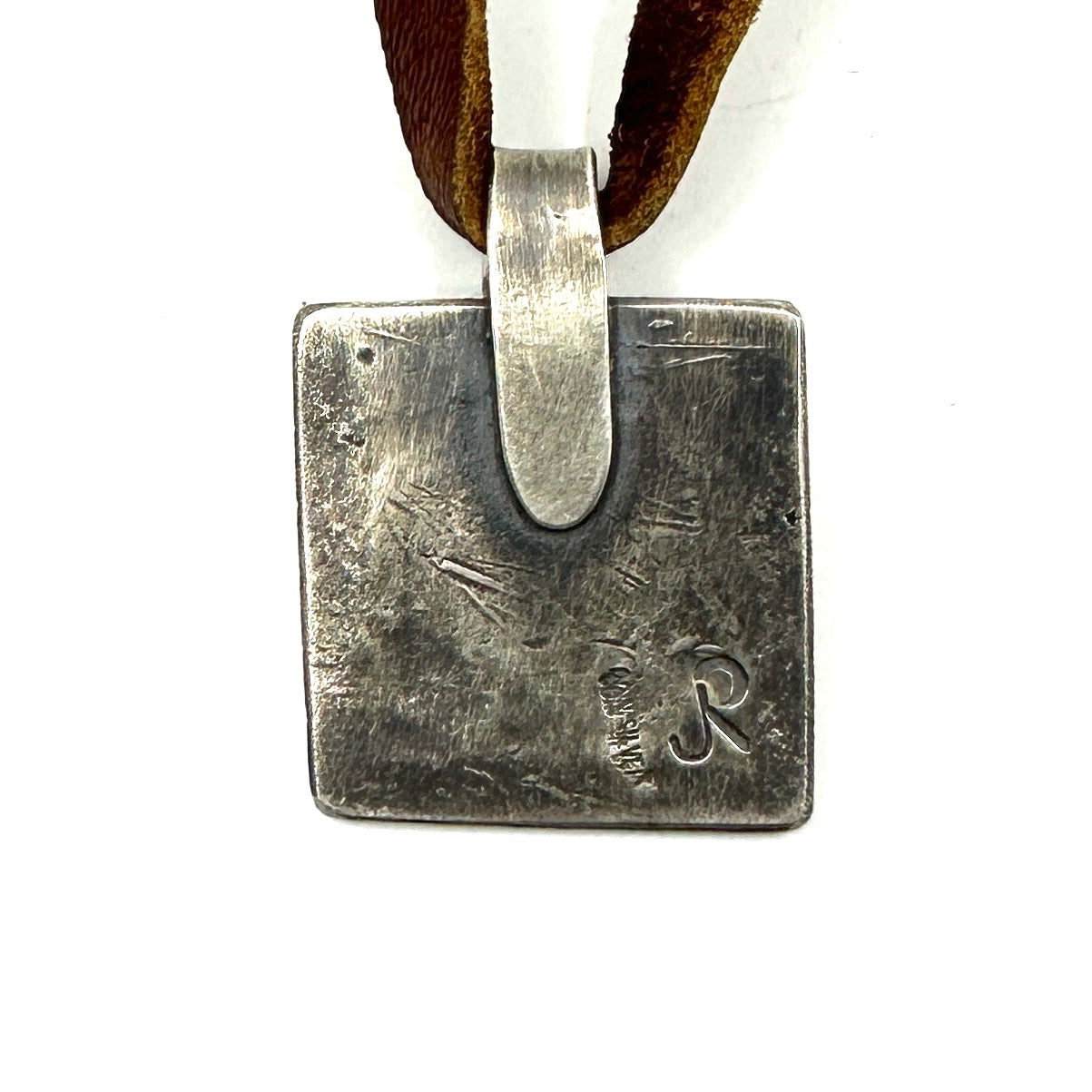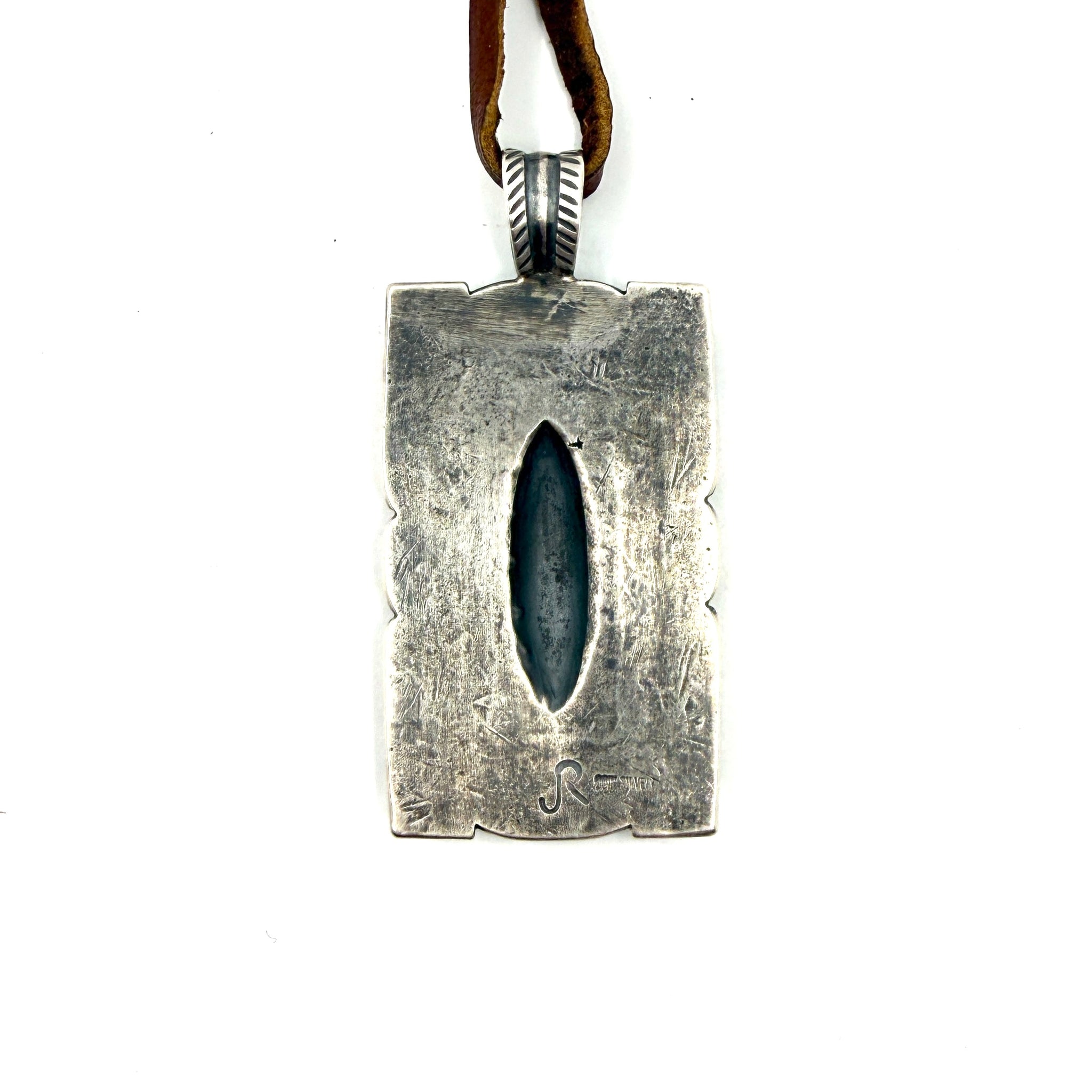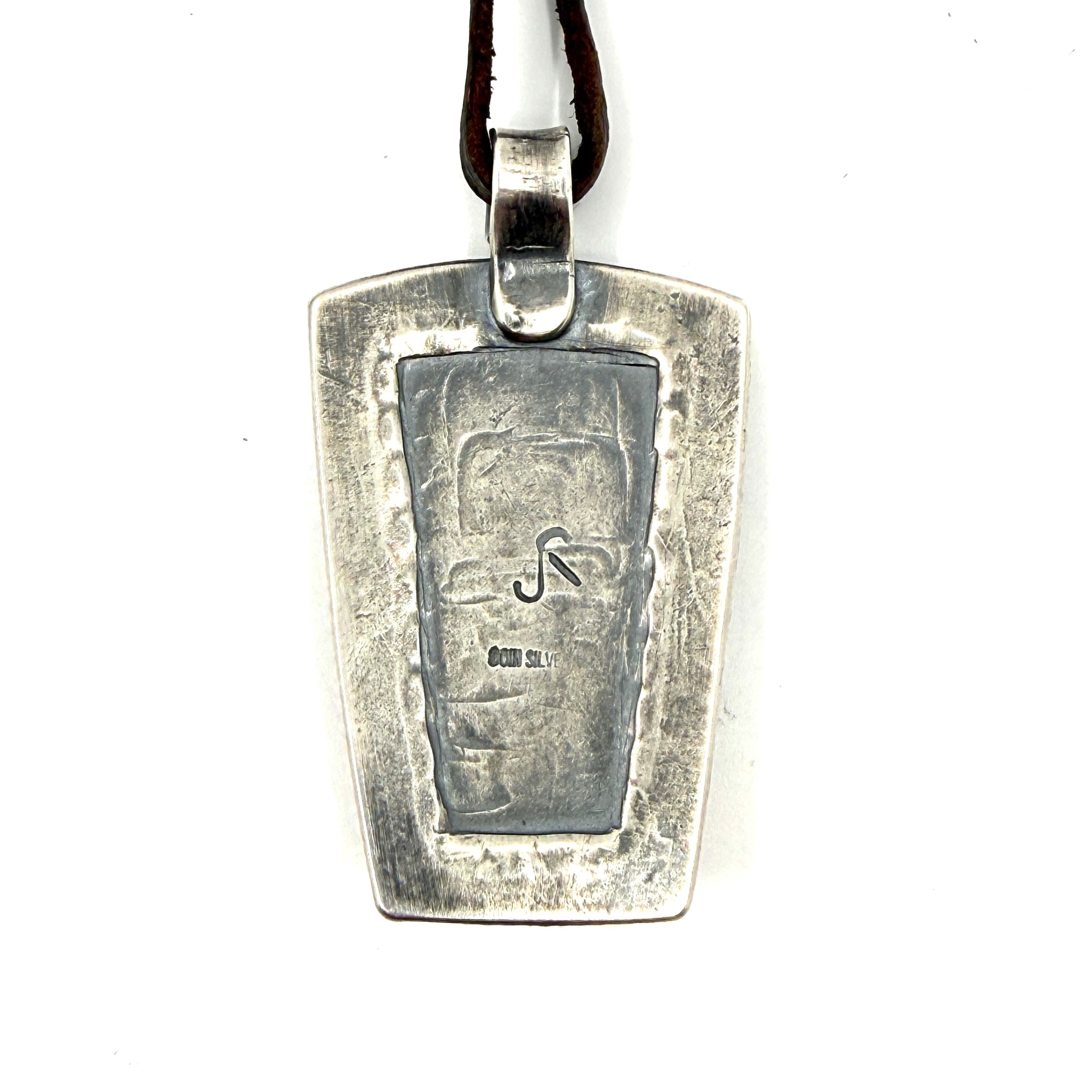 This is a new tufa cast coin silver ingot traveler pendant features a coin silver bump up made from a new stamp in the Jesse Robbins collection. Strung on hand-cut...