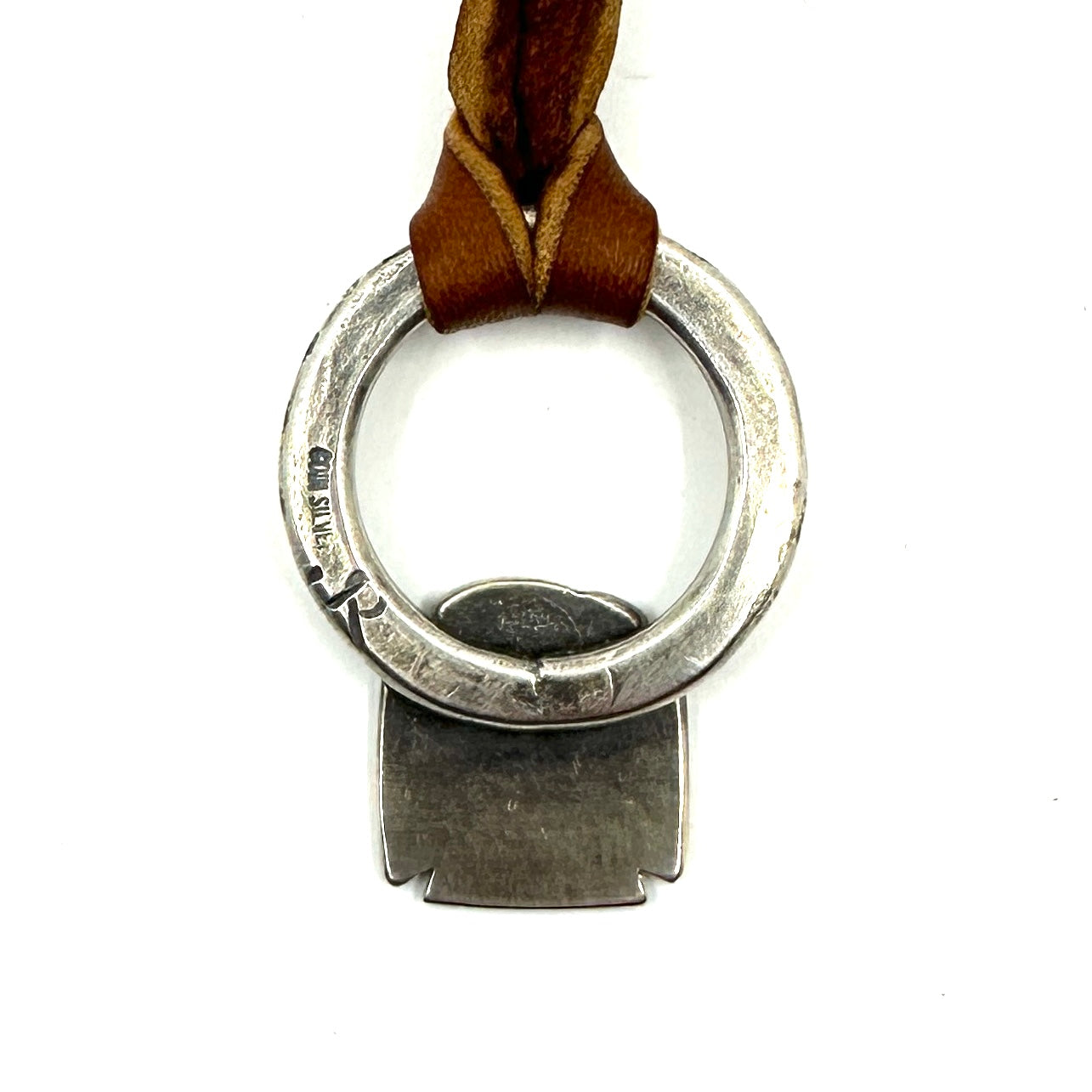 This coin silver cross was hand-filled and stamped. It is strung on hand-cut deer lace accented with a silver adjustment bead. Cross Size: 2" wide by 1" tall. Adjustable up...